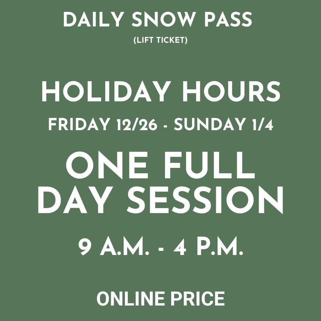 HOLIDAY HOURS | FULL DAY 9AM - 4PM | Daily Snow Pass