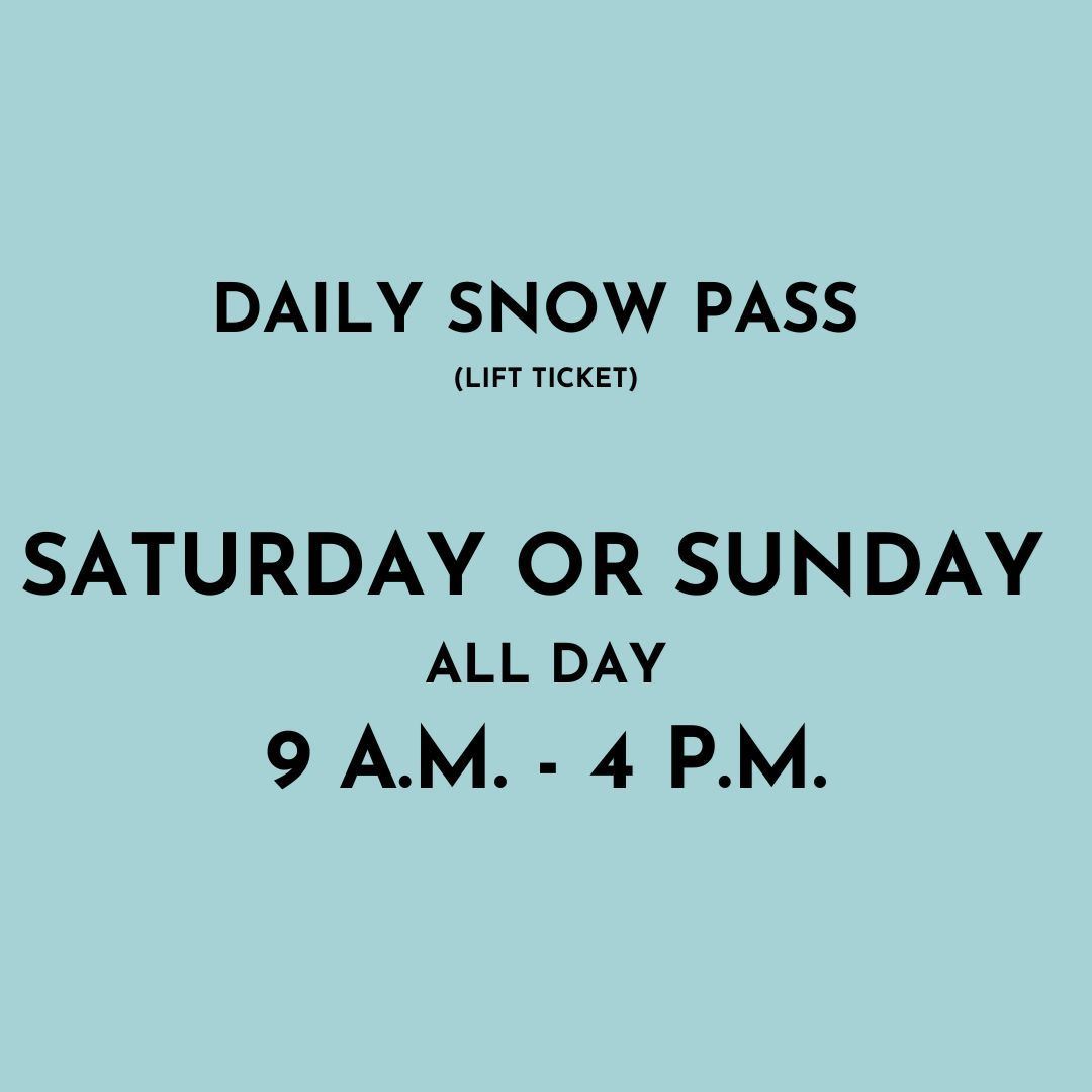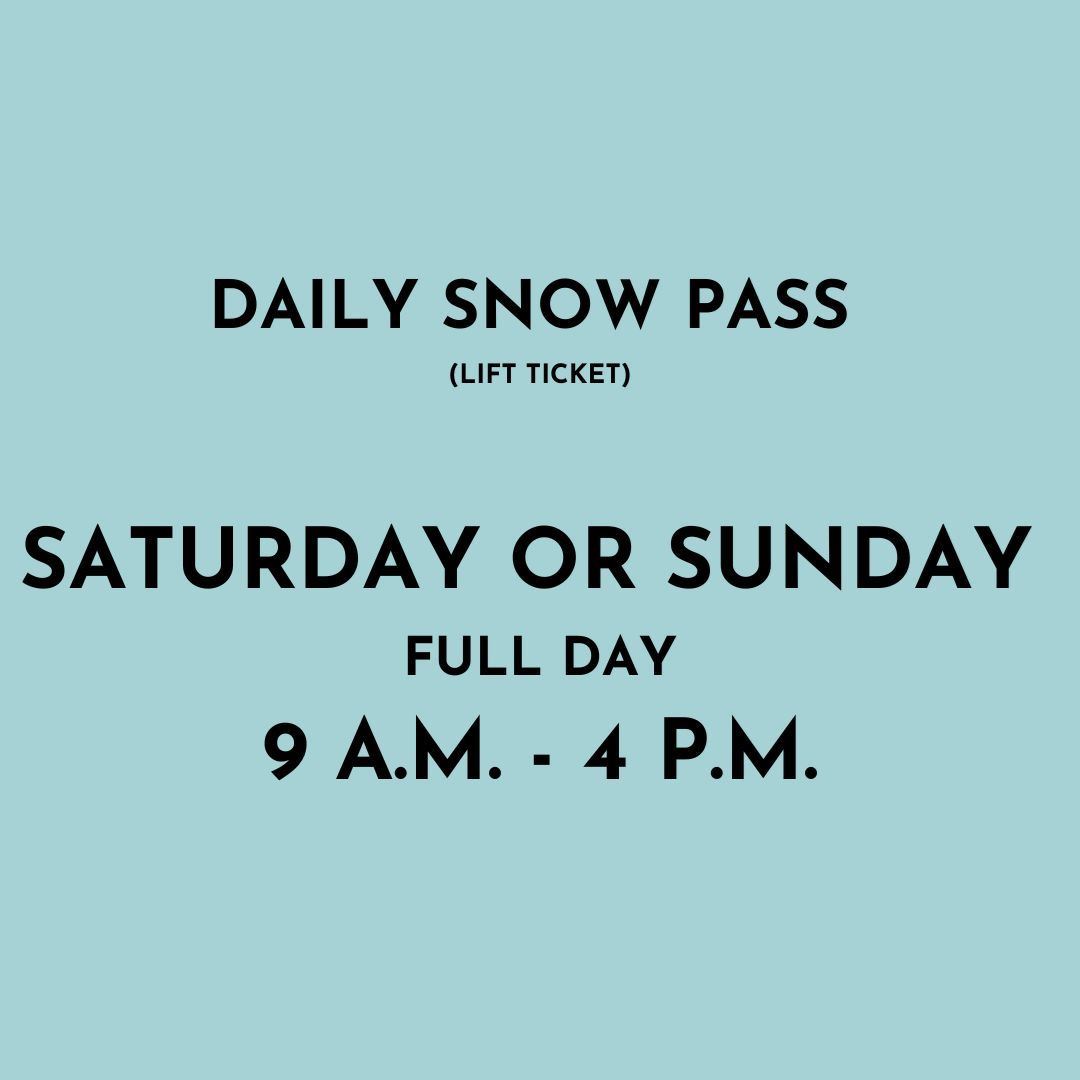 Purchasing: Daily Snow Pass may be purchased online or at the Ticket Window. Online purchase availability will end 2 hours prior to the start of the session.